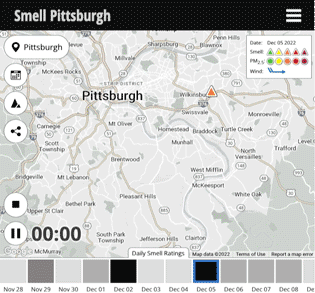 We witnessed a record number of SmellPGH app complaints on Feb. 3, 2019 during a highly polluted strong inversion that kept the pollution from the crippled Clairton Works close to the ground near where people breathe.